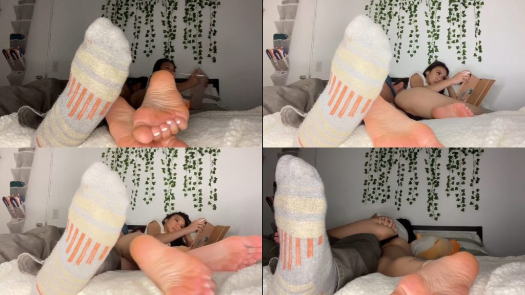 第一视角跪在情侣主的床脚,男女主人在床上抚摸玩闹,贱奴只配跪在地上被无视